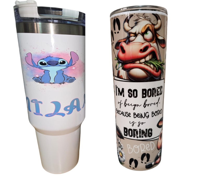 Stand out with personalized tumblers designed just for you. Perfect for on-the-go lifestyles, our tumblers keep your drinks hot or cold while showcasing your custom artwork, logo, or message. Whether for personal use, events, or branded corporate gifts, each tumbler is made with precision and printed using durable sublimation methods. Available in various sizes and styles, these eye-catching tumblers are a great way to stay refreshed and stylish at the same time.